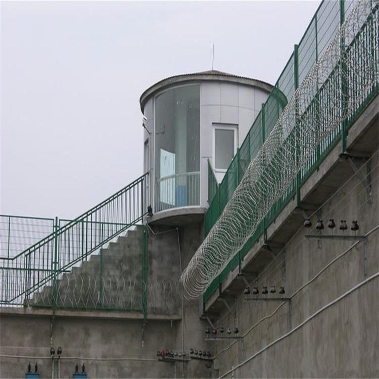 監(jiān)獄防攀爬護欄網(wǎng)也被稱監(jiān)獄鋼網(wǎng)墻,艾瑞公司專業(yè)生產(chǎn)監(jiān)獄看守所防爬護欄網(wǎng)艾瑞公司生產(chǎn)的護欄網(wǎng)立柱由Y形鍍鋅鋼管制成,鋼管的壁厚為150 * 150 * 8mm,網(wǎng)架的尺寸為60 * 60 * 2.5m。此外,監(jiān)獄防攀爬護欄網(wǎng)的Y形柱還配備了不銹鋼刀片刺網(wǎng),并對其表面進行了噴涂。常見的是深綠色噴涂和銀灰色噴涂,看起來高端,簡單而美麗,并且可以起到防腐防銹的作用,還可以起到裝飾環(huán)境的作用。下面就來介紹一下監(jiān)獄防攀爬護欄網(wǎng)的特點以及結(jié)構(gòu)規(guī)格。
