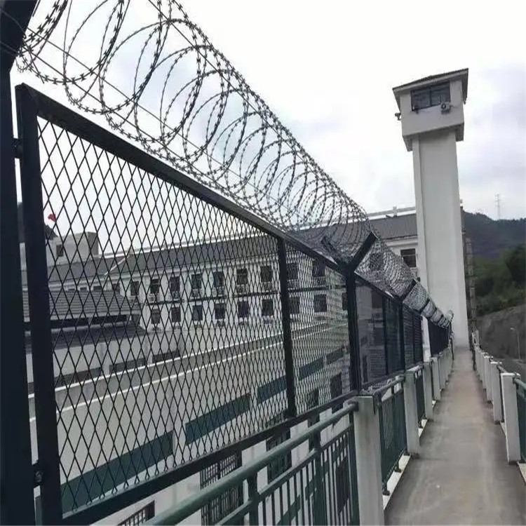 監(jiān)獄、看守所巡道隔離網(wǎng) 監(jiān)獄防御隔離網(wǎng) 防攀爬隔離網(wǎng),監(jiān)獄刀片刺網(wǎng)隔離網(wǎng)主要用于園林公寓、機(jī)關(guān)單位、監(jiān)獄、哨所、邊防等的圈禁防護(hù)。刀刺隔離網(wǎng)由銳利尖角鍍鋅鋼板或不銹鋼薄板做刀片,高張力鋼絲做芯線組合而成的阻絕器材。由于刀片刺繩隔離網(wǎng)造形獨(dú)特不易觸摸,因而能達(dá)到很好的防護(hù)隔離效果。直線形刀片刺網(wǎng)由刀片型直線刺網(wǎng)交叉焊接成型,可用于防盜窗、高速護(hù)欄、隔離柵。施工迅速、效果顯著。刀刺隔離網(wǎng),有多種架設(shè)方式可供選擇,施工迅速,既省經(jīng)費(fèi),又可達(dá)到安全隔離網(wǎng)效果。