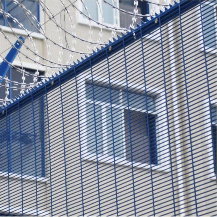工程案例密紋護(hù)欄網(wǎng)又名358護(hù)欄網(wǎng),358密紋護(hù)欄網(wǎng), 358護(hù)欄網(wǎng)是一種外型高大的焊網(wǎng),上部有保護(hù)性尖刺網(wǎng),網(wǎng)線為鍍鋅鋼絲,加pvc涂塑處理,在保護(hù)美觀的同時,保證了堅固與耐用。網(wǎng)片網(wǎng)孔比較小,對焊接技術(shù)和機(jī)器要求比較高。特點是橫絲或者豎絲間隙很小,一般間隔為30mm以內(nèi),能有效防止攀爬和絲鉗的破壞,并具有良好的透視性。也可與刀片刺絲網(wǎng)配合使用,增強(qiáng)防護(hù)性能。