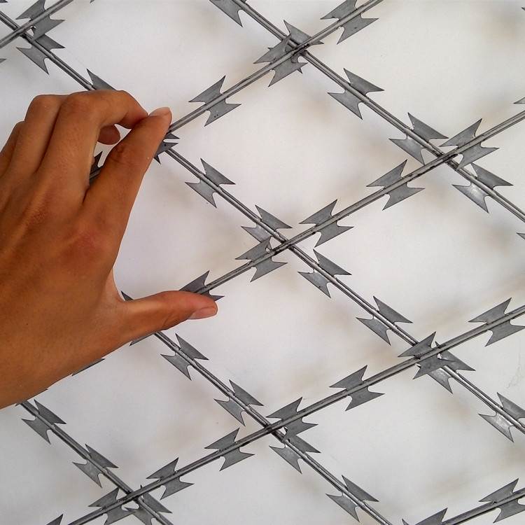 菱形孔刀片刺網護欄也稱為刀片刺絲、刀片刺網,是一種新型防護網。