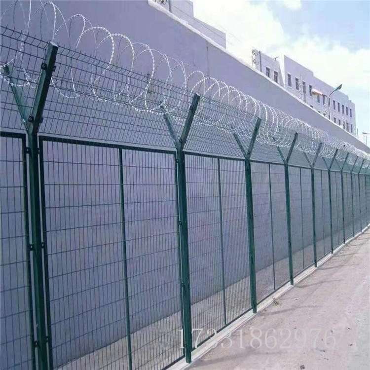 監(jiān)獄護欄網(wǎng)又稱作“Y型安全防御護網(wǎng)”和機場護欄網(wǎng)通用,是由V型支架立柱,加強型焊接片網(wǎng),安全防盜連接件和熱鍍鋅刀片刺籠組成強度和安全防御性很高。近年來,被廣泛應(yīng)用在監(jiān)獄,軍事基地等高安全場所。注:如果在監(jiān)獄護欄網(wǎng)頂部加裝刀片刺絲、刀片刺繩后又很好的增強了安全防護性能。采用電鍍、熱鍍、噴塑、浸塑等防腐形式,具有很好的抗老化、抗曬、耐候等特點。其產(chǎn)品造型美觀、花色多樣,既起到圍欄作用,又起到美化作用。由于具有安全性高、防攀爬能力好,網(wǎng)片連接方式采用特制SBS緊扣件,有效防止人為的破壞性拆卸,橫向四道折彎加強筋,使網(wǎng)面強度顯著增加。