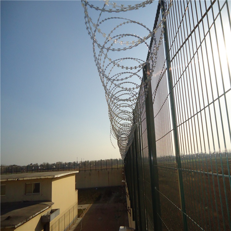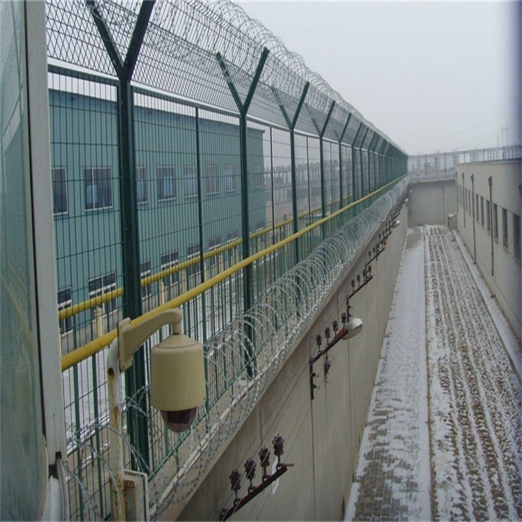 近年來(lái),被廣泛應(yīng)用在監(jiān)獄,軍事基地等高安全場(chǎng)所。注:如果在監(jiān)獄護(hù)欄網(wǎng)頂部加裝刀片刺絲、刀片刺繩后又很好的增強(qiáng)了安全防護(hù)性能。