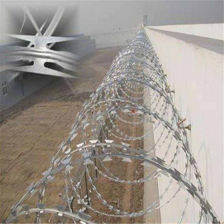 新聞動(dòng)態(tài)監(jiān)獄專門用來防護(hù)的鐵絲網(wǎng)學(xué)名叫做鍍鋅刀片刺繩,可以直接安裝在墻面上,也可以在墻面安裝圍欄網(wǎng)以后再圍欄網(wǎng)上邊安裝。