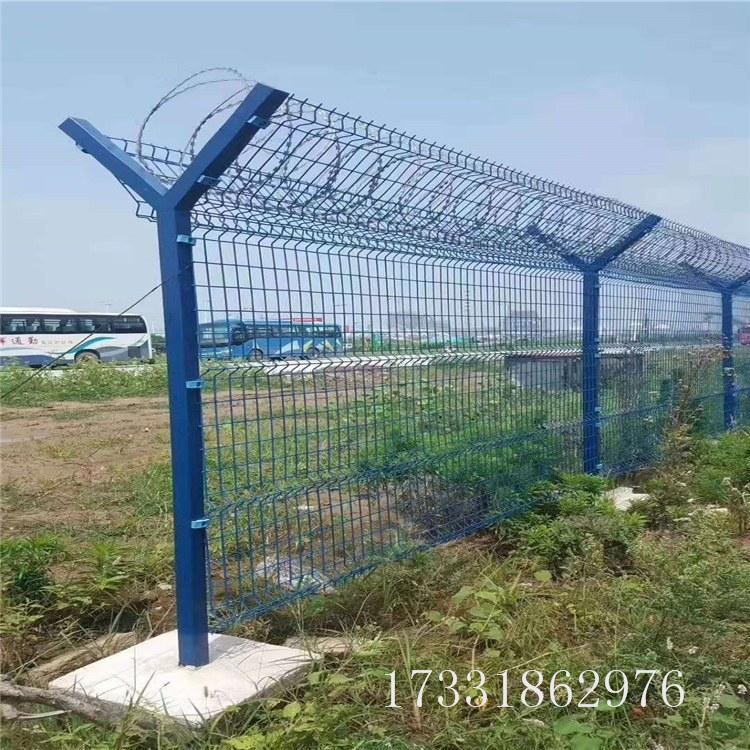 為增加防護(hù)性能,產(chǎn)品頂部都預(yù)設(shè)增加了刺繩,為了很好地安裝,機(jī)場(chǎng)圍欄的立柱都是采用的Y型立柱!可以有效的承托其刺繩的防護(hù)!