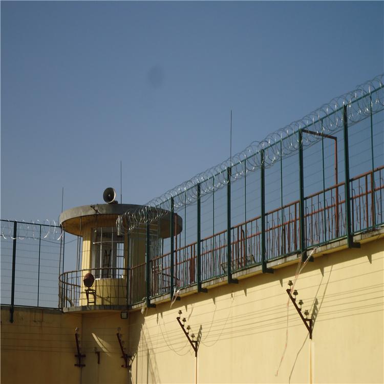 監(jiān)獄護(hù)欄網(wǎng)又稱作“Y型安全防御護(hù)網(wǎng)”,是由V型支架立柱,加強(qiáng)型焊接片網(wǎng),安全防盜連接件和熱鍍鋅刀片刺籠組成,強(qiáng)度和安全防御性級別很高。近年來,被廣泛應(yīng)用在監(jiān)獄,軍事基地等高安全場所。注:如果在監(jiān)獄護(hù)欄網(wǎng)頂部加裝刀片刺絲、刀片刺繩后又很好的增強(qiáng)了安全防護(hù)性能。采用電鍍、熱鍍、噴塑、浸塑等防腐形式,具有很好的抗老化、抗曬、耐候等特點(diǎn)。其產(chǎn)品造型美觀、花色多樣,既起到圍欄作用,又起到美化作用。由于具有安全性高、防攀爬能力好,網(wǎng)片連接方式采用特制SBS緊扣件,有效防止人為的破壞性拆卸,橫向四道折彎加強(qiáng)筋,使網(wǎng)面強(qiáng)度顯著增加。