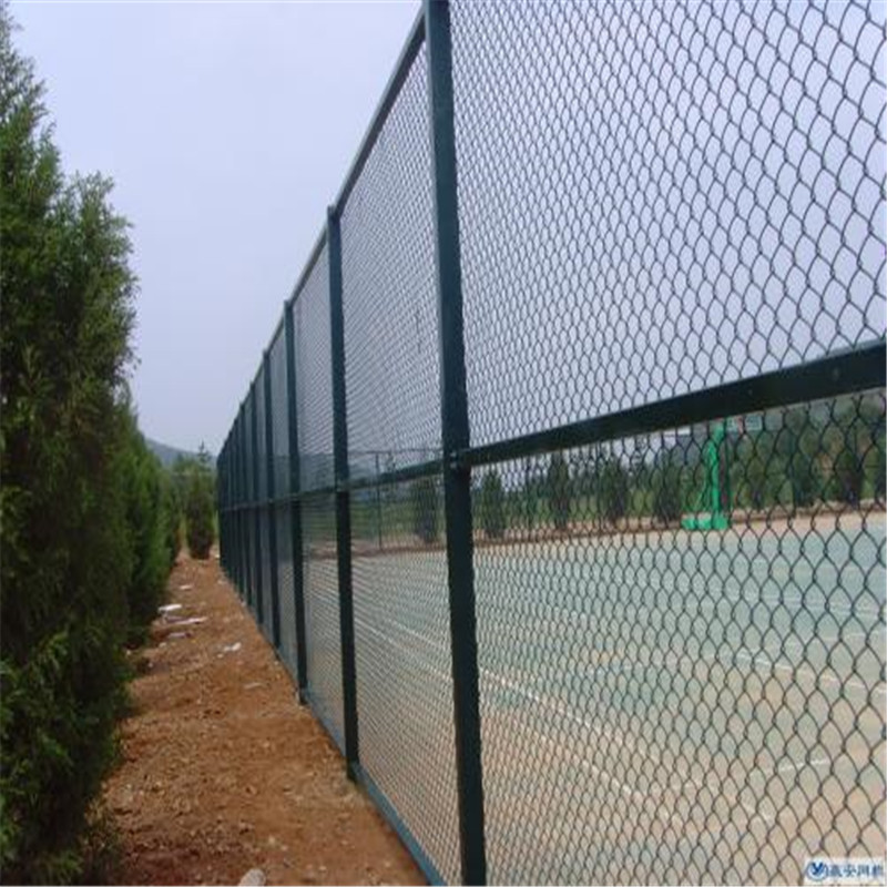 選用優(yōu)質(zhì)低碳鋼絲。 編織方法: 編織焊接而成。 規(guī)格: 1. 包塑絲經(jīng):3.8mm ; 2. 網(wǎng)孔:50mm X 50mm; 3. 尺寸:3000mm X 4000mm; 4. 立柱:60/2.5mm; 5. 橫柱:48/2mm; 防腐處理: 電鍍、熱鍍、噴塑、浸塑處。 優(yōu)點: 具有防腐、防老化、抗曬、耐候、色彩鮮亮、網(wǎng)面平整,強力張緊,不易受外力撞擊變形、現(xiàn)場施工安裝、靈活性好(可根據(jù)現(xiàn)場要求隨時調(diào)整造型和尺寸)。 可選顏色: 藍色、綠色、黃色、白色等。