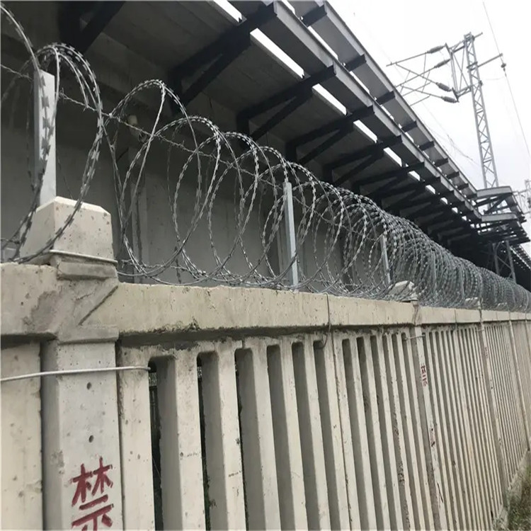 刺絲滾籠主要包括刀片剌網(wǎng),刺繩,和支架等.安裝好后具有很好的阻嚇效果,與能起到相同作用的產(chǎn)品比起來性價比是高很多的.主要制作工藝就是由熱鍍鋅鋼板或者不銹鋼鋼板沖壓出尖銳的刀片,然后由高張力鍍鋅鋼絲或者不銹鋼絲來做芯線組合構(gòu)成的防護(hù)產(chǎn)品。