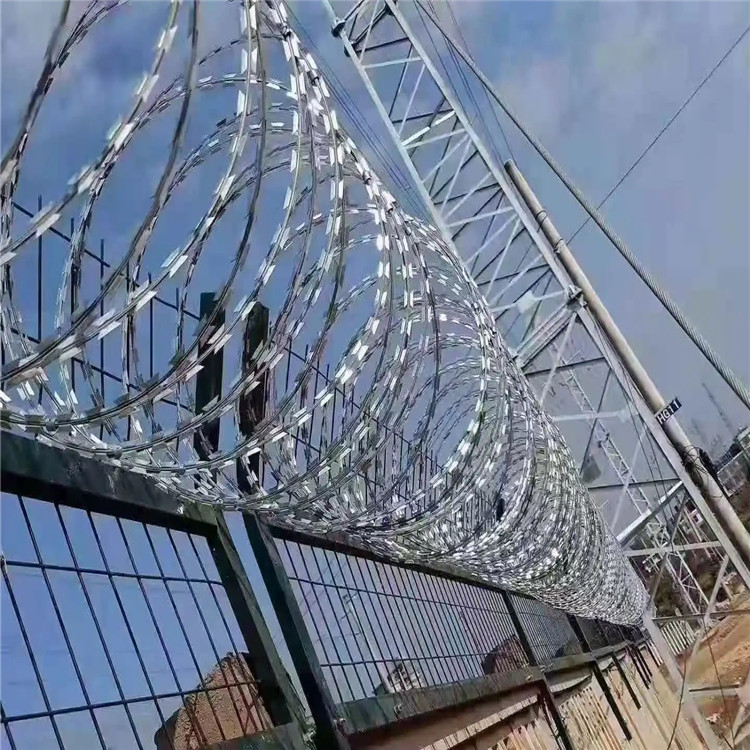 近年來(lái),監(jiān)獄用蛇腹型不銹鋼刀刺網(wǎng)被廣泛應(yīng)用在監(jiān)獄,看守所,軍事基地等高安全場(chǎng)所。通常在Y型架上邊架蛇腹型不銹鋼刀刺網(wǎng):由不銹鋼薄板沖壓出尖利的刀片狀,張力不銹鋼絲做芯線組合而成的阻盡器材。刀刺直徑采取5060厘米,刀型整潔、刀片鋒利排列均勻致密、連接堅(jiān)固、防腐才能強(qiáng),可能達(dá)到防擎越、防拆卸更高保險(xiǎn)等級(jí)。