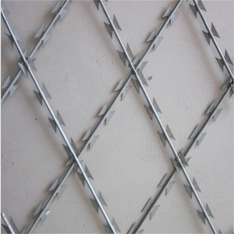 刀片刺網(wǎng)又名刮刀型刺絲,是一種近年發(fā)展起來的防護、隔離能力較強的新型防護網(wǎng)產(chǎn)品。鋒利的刀型刺由雙線扣裝后成蛇腹狀,既美觀又讓人不寒而栗。起到了很好的阻嚇作用。同時該產(chǎn)品具有美觀、防阻效果好、施工便利等優(yōu)點。
