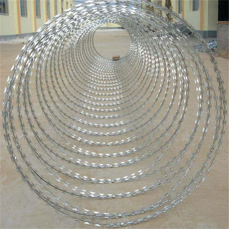 新聞動態(tài)刀片刺繩又叫蛇腹形(型)刀刺網(wǎng)或螺旋型交叉刀片刺網(wǎng),由沖切鋼板采用機械壓軋在鋼絲上成型,刀刺寬度22mm,兩刃垂直間距15mm,刀刺縱向間距34mm,芯絲直徑為2.5mm。刀片采用厚度0.5mm的Q195鋼板沖切制作,芯絲由HPB300?6.5mm高線鋼絲加工。可搭配支架在圍墻上使用,也可架設(shè)在隔離網(wǎng)上,鐵路、邊防使用率也很高。也可以拉直焊接成網(wǎng)片使用,長度和寬度可以根據(jù)客戶需求進(jìn)行制作,一般常見的長度為2-3米,寬度為1.5米-2.5米??梢愿鶕?jù)不同的用途搭配立柱合邊框進(jìn)行自由組合。網(wǎng)孔可設(shè)計菱形或者方形,材質(zhì)常見的有不銹鋼、熱鍍鋅等,不同的材質(zhì)可根據(jù)環(huán)境和使用條件選擇。焊接刀片隔離網(wǎng)作為一種高效的防護(hù)設(shè)施,其產(chǎn)品規(guī)格和結(jié)構(gòu)特點的不同組合可以滿足不同的使用需求,適用于工廠、學(xué)校、軍事基地、機場、大型活動場地等各種需要防護(hù)的場所,是一種重要的安全配置。
