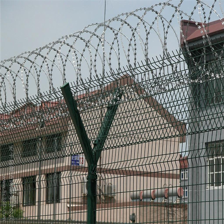 監(jiān)獄隔離網(wǎng)的網(wǎng)孔尺寸通常為50mm×50mm或者75mm×75mm。這樣的網(wǎng)孔尺寸可以有效防止犯人通過(guò)網(wǎng)孔逃脫,同時(shí)也能夠防止外界人員將違禁物品通過(guò)網(wǎng)孔送入監(jiān)獄。縱橫線直徑通常為4mm或者5mm。這樣的直徑可以保證隔離網(wǎng)的強(qiáng)度和穩(wěn)定性,防止犯人使用工具進(jìn)行破壞。3. 高度和長(zhǎng)度:監(jiān)獄高墻隔離網(wǎng)的高度通常為3m至6m不等,長(zhǎng)度可以根據(jù)實(shí)際需要進(jìn)行定制。高度的選擇應(yīng)該根據(jù)監(jiān)獄的實(shí)際情況和安全要求來(lái)確定,以確保犯人無(wú)法攀爬越過(guò)隔離網(wǎng)。表面通常采用熱鍍鋅處理,以增加其抗腐蝕性能和使用壽命。熱鍍鋅處理可以有效防止隔離網(wǎng)受到氧化和腐蝕,保持其外觀美觀和功能完好。安裝方式通常有固定式和可拆卸式兩種。固定式的隔離網(wǎng)安裝在墻體上,一般不可拆卸;可拆卸式的隔離網(wǎng)則可以根據(jù)需要進(jìn)行拆卸和安裝,方便維修和清潔。