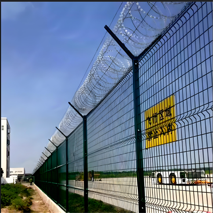 新聞動態(tài)機場護欄網(wǎng)又稱作“Y型安全防御護網(wǎng)”,是由折彎網(wǎng)片,V型支架立柱,加強型焊接片網(wǎng),上面有刀片刺繩(又稱刀刺網(wǎng),刀片護網(wǎng))安全防盜連接件組成強度和安全防御性級別很高。被廣泛應(yīng)用在機場,飛行基地等安全場所。機場護欄網(wǎng)選材一定要謹慎,市面上存在眾多常見的機場防護網(wǎng)、生產(chǎn)原材料等等。它們的構(gòu)成以及防腐方面均存在不同的差別。