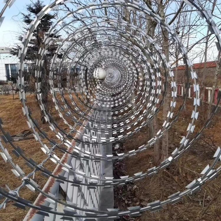 新聞動態(tài)刺絲滾籠又叫刀片刺網(wǎng),刀刺網(wǎng),刀片刺繩,常用的材質(zhì)是熱鍍鋅和不銹鋼304的。根據(jù)刀花的形狀,分為