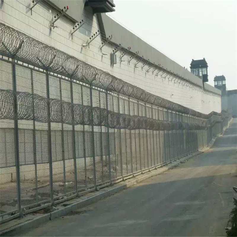監(jiān)獄鋼網(wǎng)墻是非常重要的監(jiān)獄安全防護設(shè)施,由焊接鋼網(wǎng)加蛇腹形刀刺網(wǎng)組合而成。產(chǎn)品具有結(jié)構(gòu)新穎、堅固緊密、網(wǎng)面平整、網(wǎng)孔均勻、刀鋒銳利、防攀爬、抗腐蝕性強等特點。建設(shè)于看守所的內(nèi)外墻地面及高墻之上,監(jiān)獄護欄網(wǎng)內(nèi)側(cè)或頂部加裝蛇腹形刀刺網(wǎng),形成一道高不可攀、難以逾越的隔離障礙。配合高壓打擊電網(wǎng)、各種看守所報警設(shè)備確保監(jiān)獄安全萬無一失。