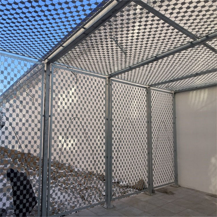 工程案例監(jiān)獄放風(fēng)場隔離網(wǎng)、 監(jiān)獄防御隔離網(wǎng)、 防攀爬隔離網(wǎng)、監(jiān)獄刀片刺網(wǎng)隔離網(wǎng)主要用于園林公寓、機關(guān)單位、監(jiān)獄、哨所、邊防等的圈禁防護。刀刺隔離網(wǎng)由銳利尖角鍍鋅鋼板或不銹鋼薄板做刀片,高張力鋼絲做芯線組合而成的阻絕器材。由于刀片刺繩隔離網(wǎng)造形獨特不易觸摸,因而能達到很好的防護隔離效果。直線形刀片刺網(wǎng)由刀片型直線刺網(wǎng)交叉焊接成型,可用于防盜窗、高速護欄、隔離柵。施工迅速、效果顯著。刀刺隔離網(wǎng),有多種架設(shè)方式可供選擇,施工迅速,既省經(jīng)費,又可達到安全隔離網(wǎng)效果。