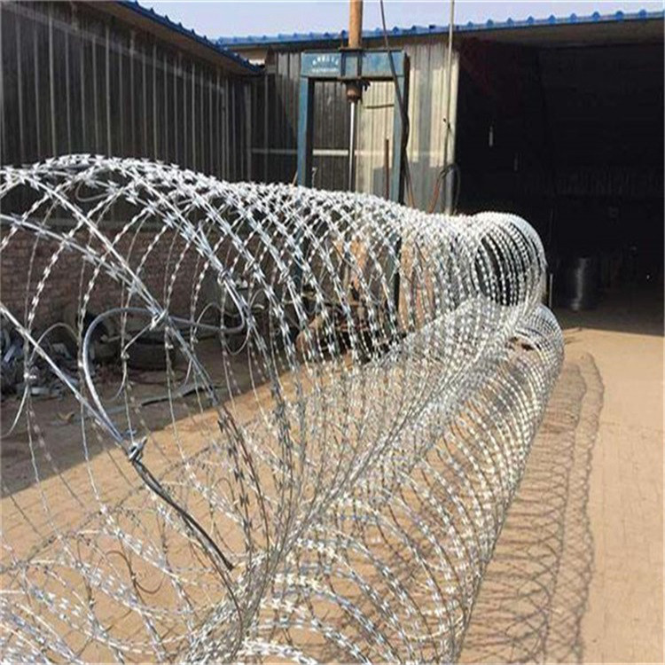 工藝:它采用鋼板(刀板)沖壓成型包附于熱鍍鋅鋼絲(芯線)之上,由銳利尖角鍍鋅鋼板或不銹鋼薄板做刀片,高張力鋼絲做芯線組合而成的。