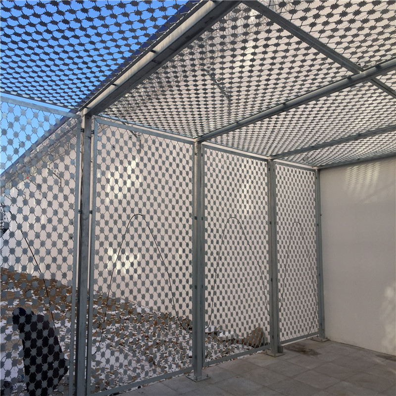 近幾年監(jiān)獄鋼網(wǎng)墻已經(jīng)成為各個(gè)監(jiān)獄 看守所 戒毒所爭(zhēng)相使用的鋼網(wǎng)墻產(chǎn)品。 監(jiān)獄鋼網(wǎng)墻可平地安裝,也可在圍墻上二次安裝,有效防止攀逃。直刺式刺網(wǎng)隔離帶,是用柱體和普通刺繩橫、縱、斜向交叉綁定成刺網(wǎng)隔離帶。主要用于特殊地帶、軍事基地圈護(hù)、溝壕圈護(hù),安裝簡(jiǎn)易,經(jīng)濟(jì)耐用。
