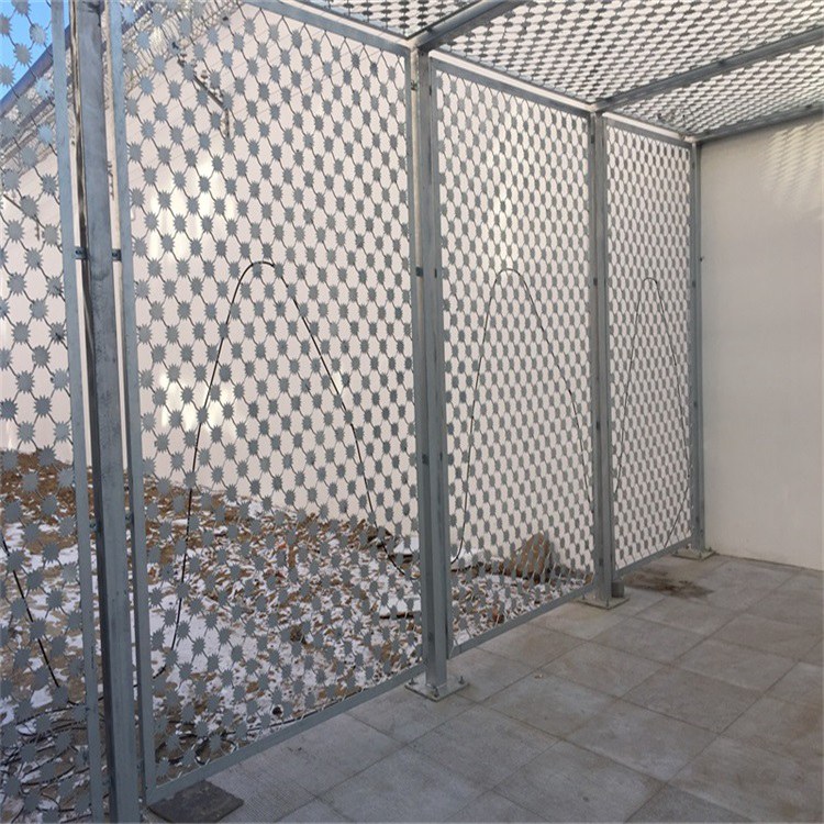 1、監(jiān)獄梅花刺阻隔網(wǎng)銜接、緊固件應(yīng)選用防盜專用螺栓(螺母)加繃簧墊,裝置固定后無專用工具無法拆開,裝置配件均選用熱鍍鋅處理。