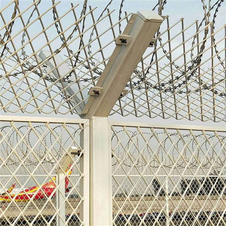 6、機場護欄網(wǎng)特點:如果在機場護欄網(wǎng)頂部加裝刀片刺絲、刀片刺繩后又很好的增強了安全防護性能。采用電鍍、熱鍍、噴塑、浸塑等防腐形式。其產(chǎn)品造型美觀、花色多樣,既起到圍欄作用,又起到美化作用。由于具有安全性高、防攀爬能力好,網(wǎng)片連接方式采用特制SBS緊扣件,有效防止人為的破壞性拆卸,機場護欄網(wǎng)橫向四道折彎加強筋,使網(wǎng)面強度顯著增加。
