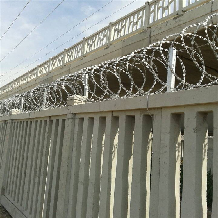 新聞動(dòng)態(tài)鐵路兩側(cè)水泥柱上安裝刺絲滾籠不僅能保護(hù)列車行車安全,而且還起到保護(hù)沿線群眾人身安全的作用。鐵路刺絲滾籠防護(hù)柵欄主要包括刀片剌網(wǎng),刺繩,和支架及卡扣等。安裝好后具有很好的阻嚇效果,與能起到相同作用的產(chǎn)品比起來性價(jià)比是高很多的。主要制作工藝就是由熱鍍鋅鋼板或者不銹鋼鋼板沖壓出尖銳的刀片,然后由高張力鍍鋅鋼絲或者不銹鋼絲來做芯線組合構(gòu)成的防護(hù)產(chǎn)品。那鐵路刺絲滾籠要如何安裝使用呢?