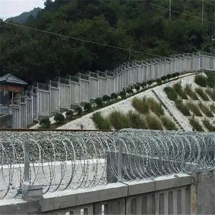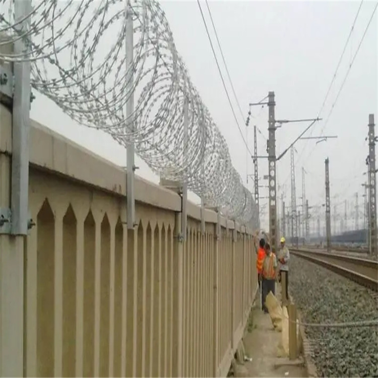 刺絲滾籠主要包括刀片剌網(wǎng),刺繩,和支架等.安裝好后具有很好的阻嚇效果,與能起到相同作用的產(chǎn)品比起來性價比是高很多的.主要制作工藝就是由熱鍍鋅鋼板或者不銹鋼鋼板沖壓出尖銳的刀片,然后由高張力鍍鋅鋼絲或者不銹鋼絲來做芯線組合構(gòu)成的防護(hù)產(chǎn)品。