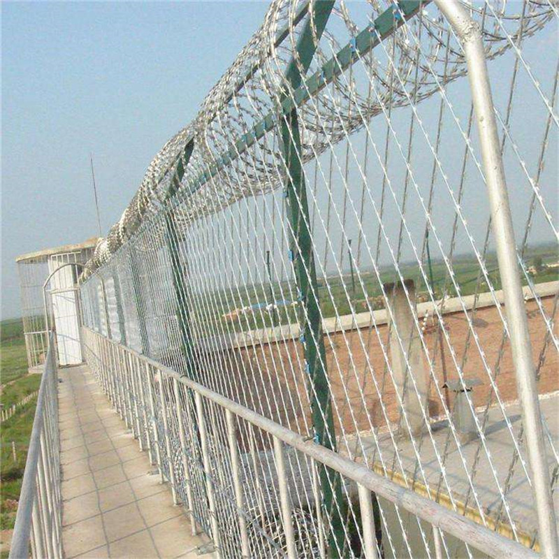 看守所鐵絲網(wǎng)的守護(hù)者,恐嚇,防止犯人越獄逃跑起到了至關(guān)重要的作用,所以看守所鐵絲網(wǎng)非常重要的監(jiān)獄防護(hù)設(shè)施,由焊接鋼網(wǎng)加蛇腹形刀刺網(wǎng)組合而成。產(chǎn)品具有結(jié)構(gòu)新穎、堅(jiān)固緊密、網(wǎng)面平整、網(wǎng)孔均勻、刀鋒銳利、防攀爬特點(diǎn)。建設(shè)于看守所的內(nèi)外墻地面及高墻之上,網(wǎng)墻內(nèi)側(cè)或頂部加裝蛇腹形刀刺網(wǎng),形成一道高不可攀、難以逾越的隔離障礙。配合高壓打擊電網(wǎng)、各種監(jiān)控報(bào)警設(shè)備確保監(jiān)獄萬(wàn)無(wú)一失。