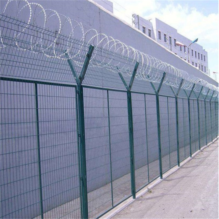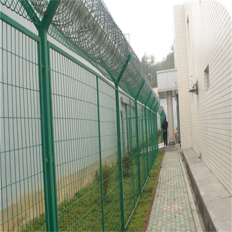看守所隔離網(wǎng)立柱的規(guī)格采用優(yōu)質(zhì)國標鋼管制作,常用規(guī)格為60mm*60mm、60mm*80mm、80mm*80mm、100mm*100mm方管或者直徑為Φ60mm、Φ75mm、Φ88mm、Φ114mm圓管。通常采用Y字型立柱,這種造型是為了方便在頂部架設(shè)刀片刺網(wǎng),刀片刺網(wǎng)的刀片非常鋒利,即使犯罪分子爬到護欄網(wǎng)上邊也是無法翻越的,只要觸摸到就會被刺傷,這種組合模式可以大大提高監(jiān)獄隔離網(wǎng)的安全防護性能。