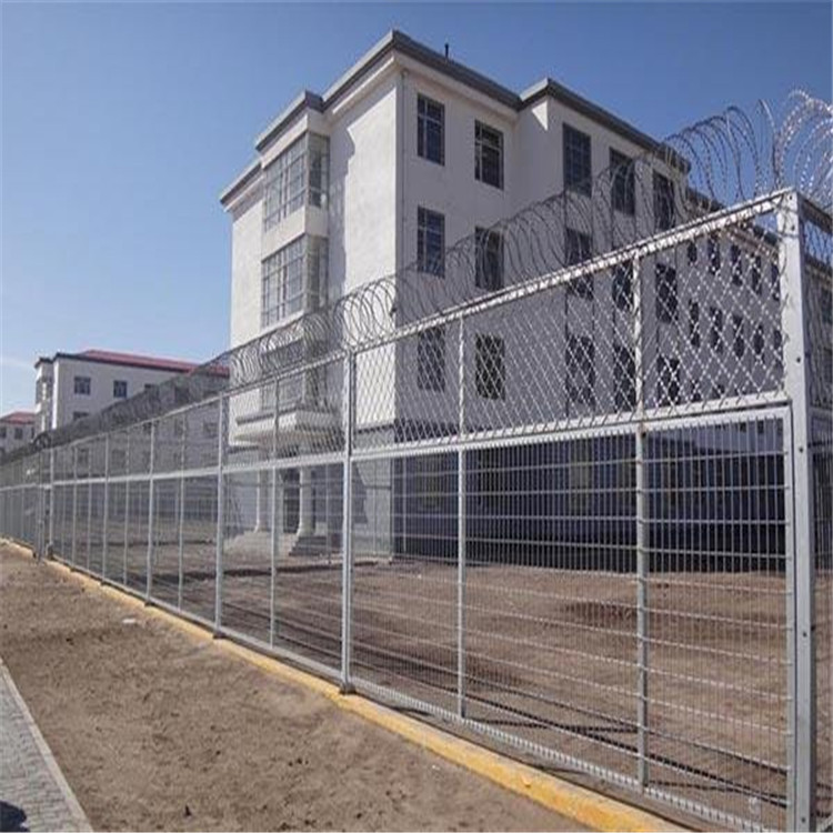 金屬護(hù)欄網(wǎng)圍墻一般采用低碳鋼絲作為主要材料,具有耐腐蝕、耐磨損、抗拉強(qiáng)度高等特點(diǎn),采用框架結(jié)構(gòu),邊框可使用方管、圓管或角鋼,立柱采用Y型立柱,頂部安裝防爬刀刺網(wǎng),高度也可根據(jù)現(xiàn)場要求定制,以確保足夠的防護(hù)效果。包括頂部應(yīng)設(shè)置的刀刺網(wǎng),以有效防止人員攀爬。這種架構(gòu)形式能提供更好的視野和通風(fēng)效果。邊框網(wǎng)結(jié)構(gòu)相對于磚墻來說具有更大的網(wǎng)眼和更少的遮擋物,能夠提供更好的視野和通風(fēng)效果,使得環(huán)境更加明亮和通風(fēng)。